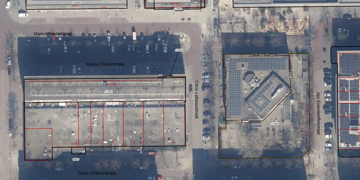 Het perceel waarop Marius Bauerstraat 207 staat heeft een oppervlakte van 1160 m². Dit is een zeer groot perceel. De perceeloppervlakte wordt geregistreerd door het Kadaster. Gedetailleerde informatie over de maten van dit perceel kunt u vinden in het rapport Kadastrale kaart met maatvoering van Marius Bauerstraat 207.