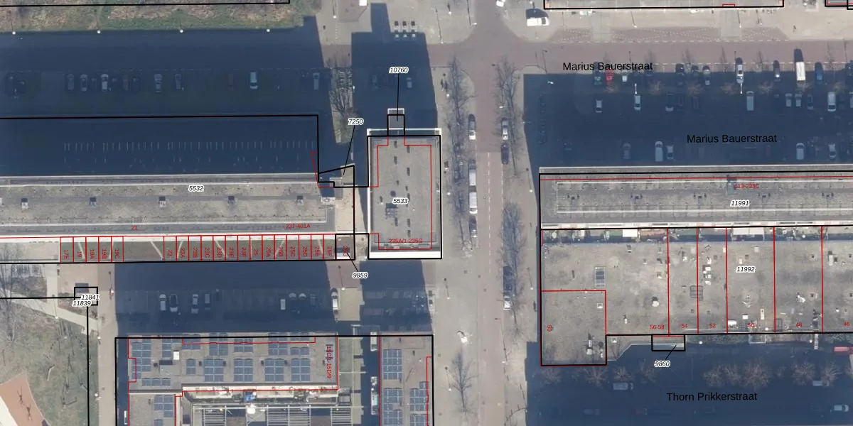 Het perceel waarop Marius Bauerstraat 235-E-5 staat heeft een oppervlakte van 530 m². Dit is een groot perceel. De perceeloppervlakte wordt geregistreerd door het Kadaster. Gedetailleerde informatie over de maten van dit perceel kunt u vinden in het rapport Kadastrale kaart met maatvoering van Marius Bauerstraat 235-E-5.