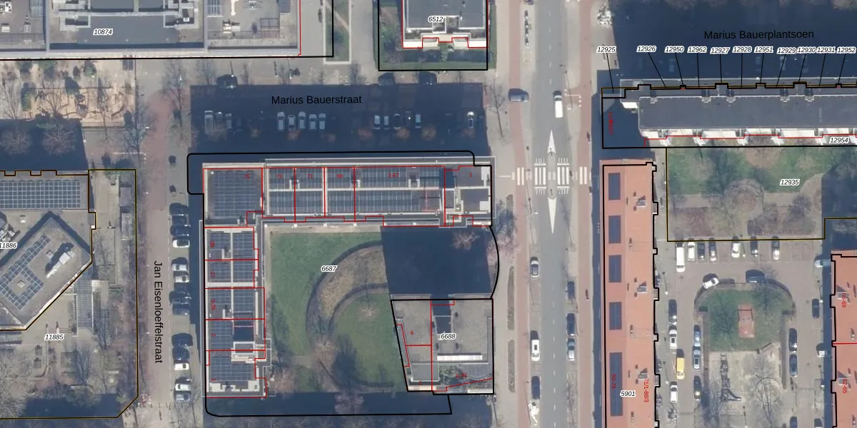 Het perceel waarop Marius Bauerstraat 31 staat heeft een oppervlakte van 3615 m². Dit is een zeer groot perceel. De perceeloppervlakte wordt geregistreerd door het Kadaster. Gedetailleerde informatie over de maten van dit perceel kunt u vinden in het rapport Kadastrale kaart met maatvoering van Marius Bauerstraat 31.