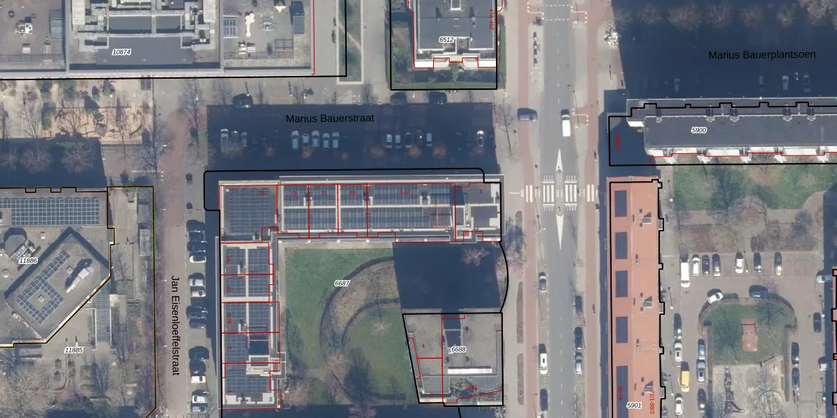Het perceel waarop Marius Bauerstraat 35 staat heeft een oppervlakte van 3615 m². Dit is een zeer groot perceel. De perceeloppervlakte wordt geregistreerd door het Kadaster. Gedetailleerde informatie over de maten van dit perceel kunt u vinden in het rapport Kadastrale kaart met maatvoering van Marius Bauerstraat 35.