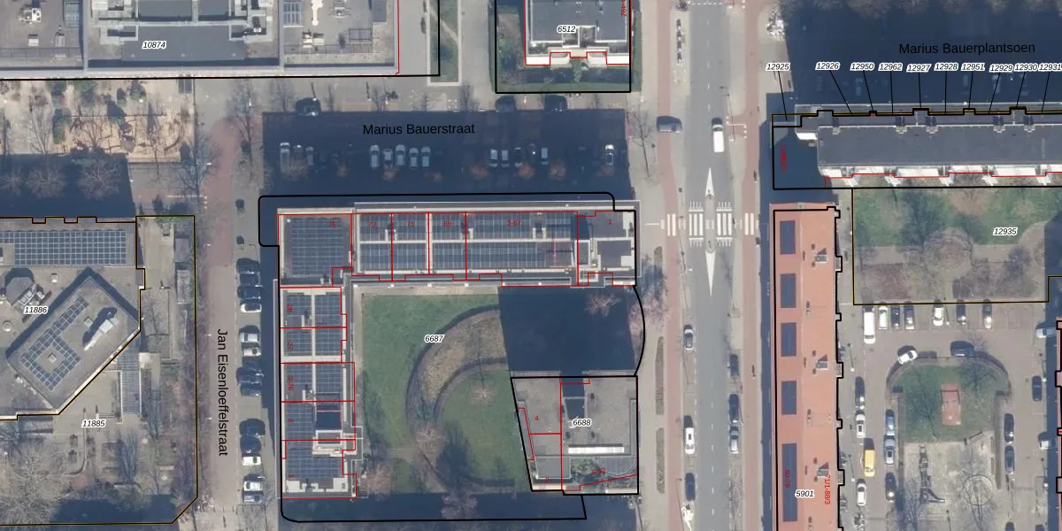 Het perceel waarop Marius Bauerstraat 57 staat heeft een oppervlakte van 3615 m². Dit is een zeer groot perceel. De perceeloppervlakte wordt geregistreerd door het Kadaster. Gedetailleerde informatie over de maten van dit perceel kunt u vinden in het rapport Kadastrale kaart met maatvoering van Marius Bauerstraat 57.