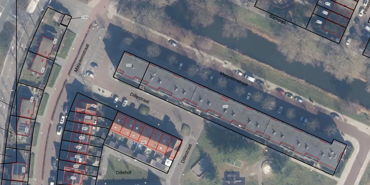 Het perceel waarop Marjoleinstraat 125 staat heeft een oppervlakte van 1810 m². Dit is een zeer groot perceel. De perceeloppervlakte wordt geregistreerd door het Kadaster. Gedetailleerde informatie over de maten van dit perceel kunt u vinden in het rapport Kadastrale kaart met maatvoering van Marjoleinstraat 125.