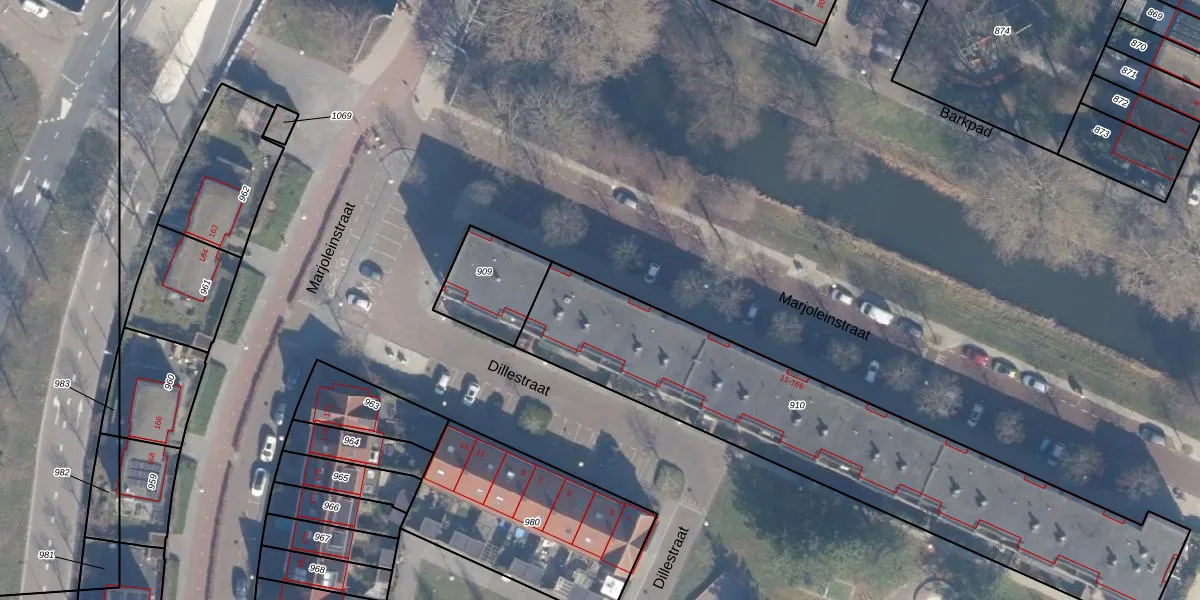 Het perceel waarop Marjoleinstraat 131 staat heeft een oppervlakte van 1810 m². Dit is een zeer groot perceel. De perceeloppervlakte wordt geregistreerd door het Kadaster. Gedetailleerde informatie over de maten van dit perceel kunt u vinden in het rapport Kadastrale kaart met maatvoering van Marjoleinstraat 131.