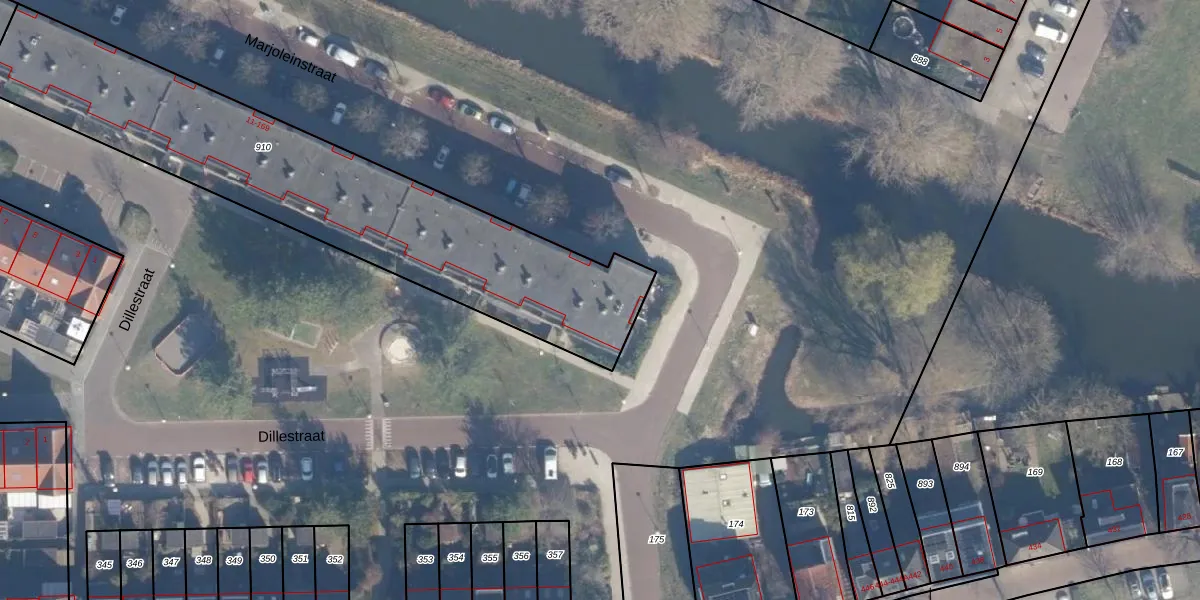 Het perceel waarop Marjoleinstraat 23 staat heeft een oppervlakte van 1810 m². Dit is een zeer groot perceel. De perceeloppervlakte wordt geregistreerd door het Kadaster. Gedetailleerde informatie over de maten van dit perceel kunt u vinden in het rapport Kadastrale kaart met maatvoering van Marjoleinstraat 23.