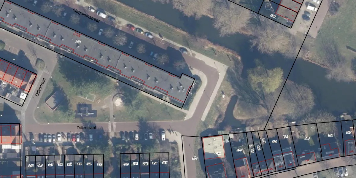 Het perceel waarop Marjoleinstraat 25 staat heeft een oppervlakte van 1810 m². Dit is een zeer groot perceel. De perceeloppervlakte wordt geregistreerd door het Kadaster. Gedetailleerde informatie over de maten van dit perceel kunt u vinden in het rapport Kadastrale kaart met maatvoering van Marjoleinstraat 25.