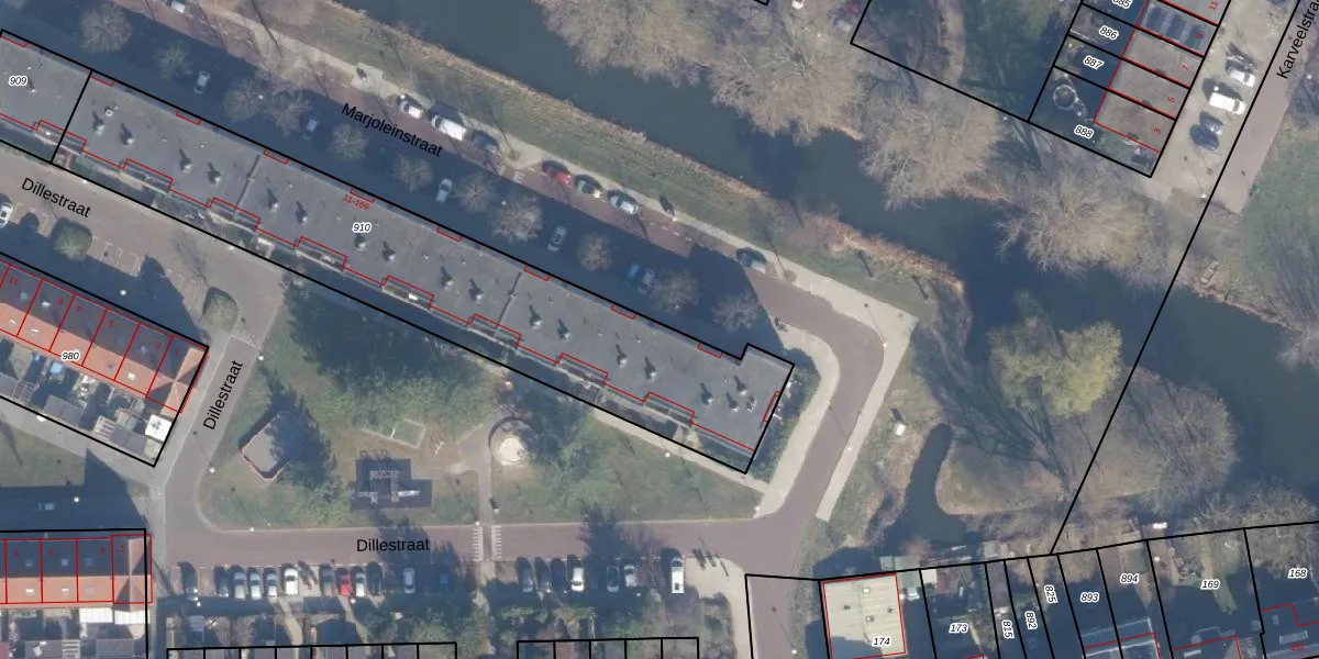 Het perceel waarop Marjoleinstraat 33 staat heeft een oppervlakte van 1810 m². Dit is een zeer groot perceel. De perceeloppervlakte wordt geregistreerd door het Kadaster. Gedetailleerde informatie over de maten van dit perceel kunt u vinden in het rapport Kadastrale kaart met maatvoering van Marjoleinstraat 33.