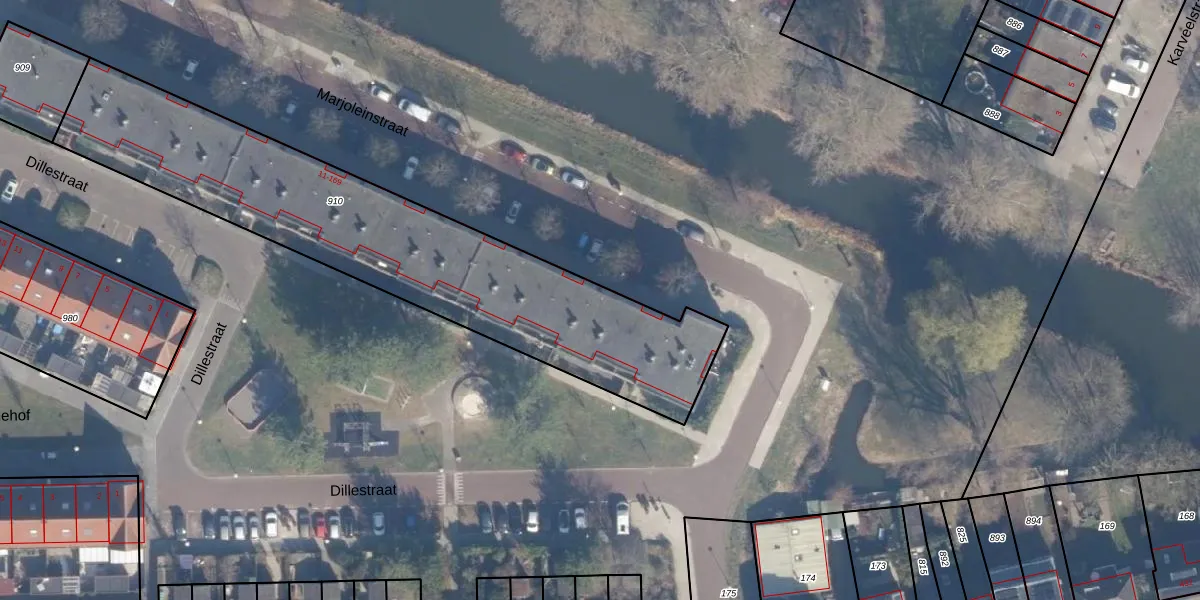 Het perceel waarop Marjoleinstraat 35 staat heeft een oppervlakte van 1810 m². Dit is een zeer groot perceel. De perceeloppervlakte wordt geregistreerd door het Kadaster. Gedetailleerde informatie over de maten van dit perceel kunt u vinden in het rapport Kadastrale kaart met maatvoering van Marjoleinstraat 35.