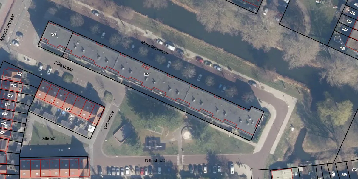 Het perceel waarop Marjoleinstraat 75 staat heeft een oppervlakte van 1810 m². Dit is een zeer groot perceel. De perceeloppervlakte wordt geregistreerd door het Kadaster. Gedetailleerde informatie over de maten van dit perceel kunt u vinden in het rapport Kadastrale kaart met maatvoering van Marjoleinstraat 75.