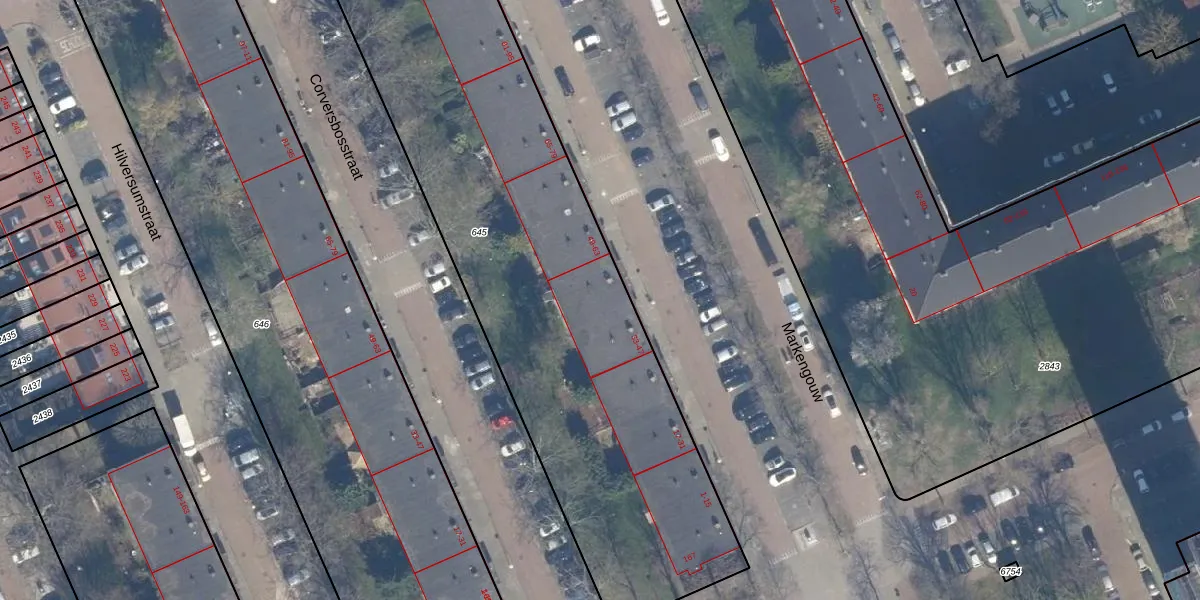 Het perceel waarop het adres ligt is ASD31-AL-645. De afkorting 'ASD31' staat voor kadastrale gemeente Amsterdam. De oppervlakte van het perceel is 3299 m². Dat is groter dan gemiddeld in Amsterdam, waar de gemiddelde perceeloppervlakte op 1159,38 m² ligt. Het kleinste perceel in de kadastrale gemeente is 0 m² groot. De grootste perceeloppervlakte is 35,6 ha. Er zijn 63 adressen aanwezig op het perceel. De huidige grenzen van het perceel zijn digitaal in de Basisregistratie Kadaster (BRK) geregistreerd op 13-01-2010.