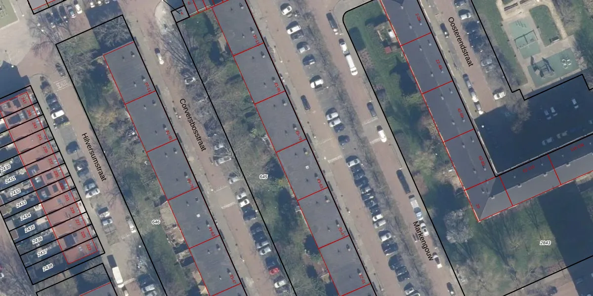 Het perceel waarop Markengouw 63 staat heeft een oppervlakte van 3299 m². Dit is een zeer groot perceel. De perceeloppervlakte wordt geregistreerd door het Kadaster. Gedetailleerde informatie over de maten van dit perceel kunt u vinden in het rapport Kadastrale kaart met maatvoering van Markengouw 63.