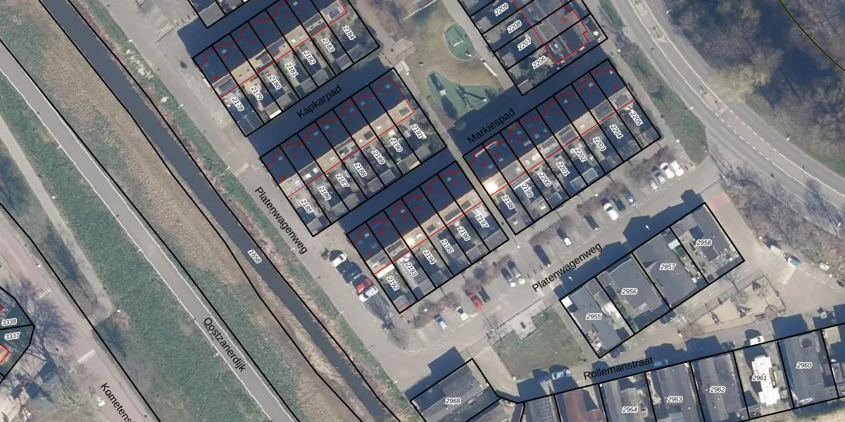 Gebruik de zoekbalk of klik op een perceel voor informatie over de adressen binnen dit perceel.