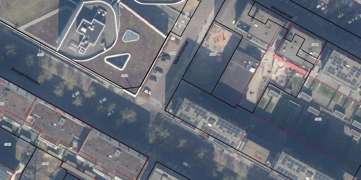 Markonstraat 3 is gelegen op kadastraal perceel ASD27AG1601. Deze kadastrale aanduiding is uniek en wordt gebruikt door het Kadaster om eigendomsrechten en andere zakelijke rechten vast te leggen. Het perceel maakt onderdeel uit van de kadastrale gemeente Amsterdam.