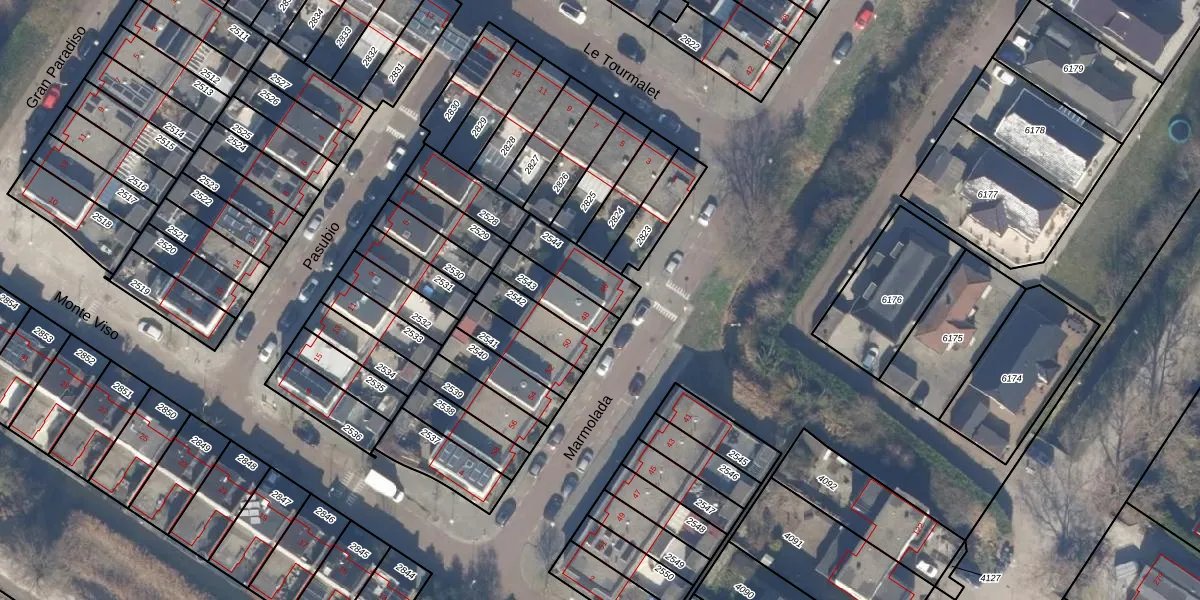 Het perceel waarop Marmolada 46 staat heeft een oppervlakte van 140 m². Dit is een middelgroot perceel. De perceeloppervlakte wordt geregistreerd door het Kadaster. Gedetailleerde informatie over de maten van dit perceel kunt u vinden in het rapport Kadastrale kaart met maatvoering van Marmolada 46.
