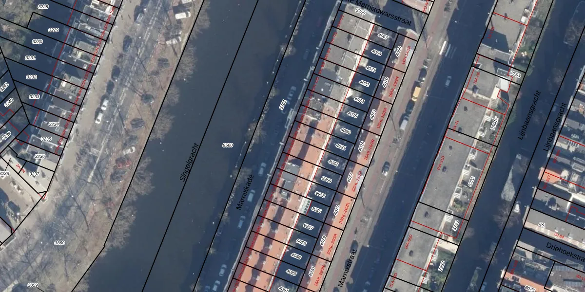 Marnixkade 14-2 is gelegen op kadastraal perceel ASD08L4082. Deze kadastrale aanduiding is uniek en wordt gebruikt door het Kadaster om eigendomsrechten en andere zakelijke rechten vast te leggen. Het perceel maakt onderdeel uit van de kadastrale gemeente Amsterdam.