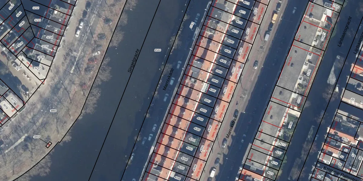 Het perceel waarop het adres ligt is ASD08-L-9957. De afkorting 'ASD08' staat voor kadastrale gemeente Amsterdam. Het perceel is kleiner dan gemiddeld in Amsterdam. Het perceel is 129 m² groot, terwijl het gemiddelde ligt op 202,23 m². Het kleinste perceel in de kadastrale gemeente is 0 m² groot. De grootste perceeloppervlakte is 3,3 ha. Op het perceel zijn 5 adressen aanwezig. De huidige grenzen van het perceel zijn digitaal in de Basisregistratie Kadaster (BRK) geregistreerd op 06-12-2024.