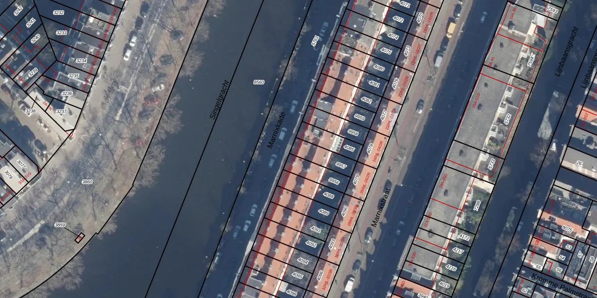 Marnixkade 18-4 is gelegen op kadastraal perceel ASD08L9957. Deze kadastrale aanduiding is uniek en wordt gebruikt door het Kadaster om eigendomsrechten en andere zakelijke rechten vast te leggen. Het perceel maakt onderdeel uit van de kadastrale gemeente Amsterdam.
