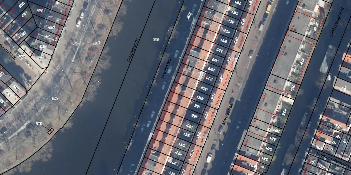 Marnixkade 19-3 is gelegen op kadastraal perceel ASD08L9956. Deze kadastrale aanduiding is uniek en wordt gebruikt door het Kadaster om eigendomsrechten en andere zakelijke rechten vast te leggen. Het perceel maakt onderdeel uit van de kadastrale gemeente Amsterdam.