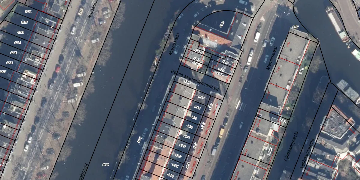 Marnixkade 6-5 is gelegen op kadastraal perceel ASD08L4067. Deze kadastrale aanduiding is uniek en wordt gebruikt door het Kadaster om eigendomsrechten en andere zakelijke rechten vast te leggen. Het perceel maakt onderdeel uit van de kadastrale gemeente Amsterdam.