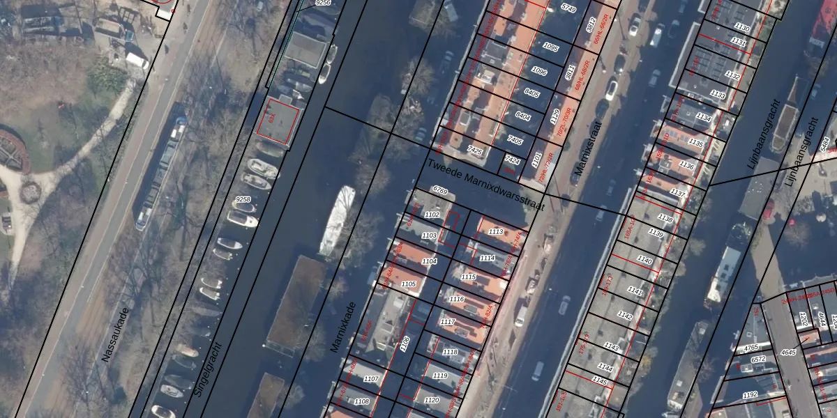 Marnixkade 61-4 is gelegen op kadastraal perceel ASD08L1102. Deze kadastrale aanduiding is uniek en wordt gebruikt door het Kadaster om eigendomsrechten en andere zakelijke rechten vast te leggen. Het perceel maakt onderdeel uit van de kadastrale gemeente Amsterdam.