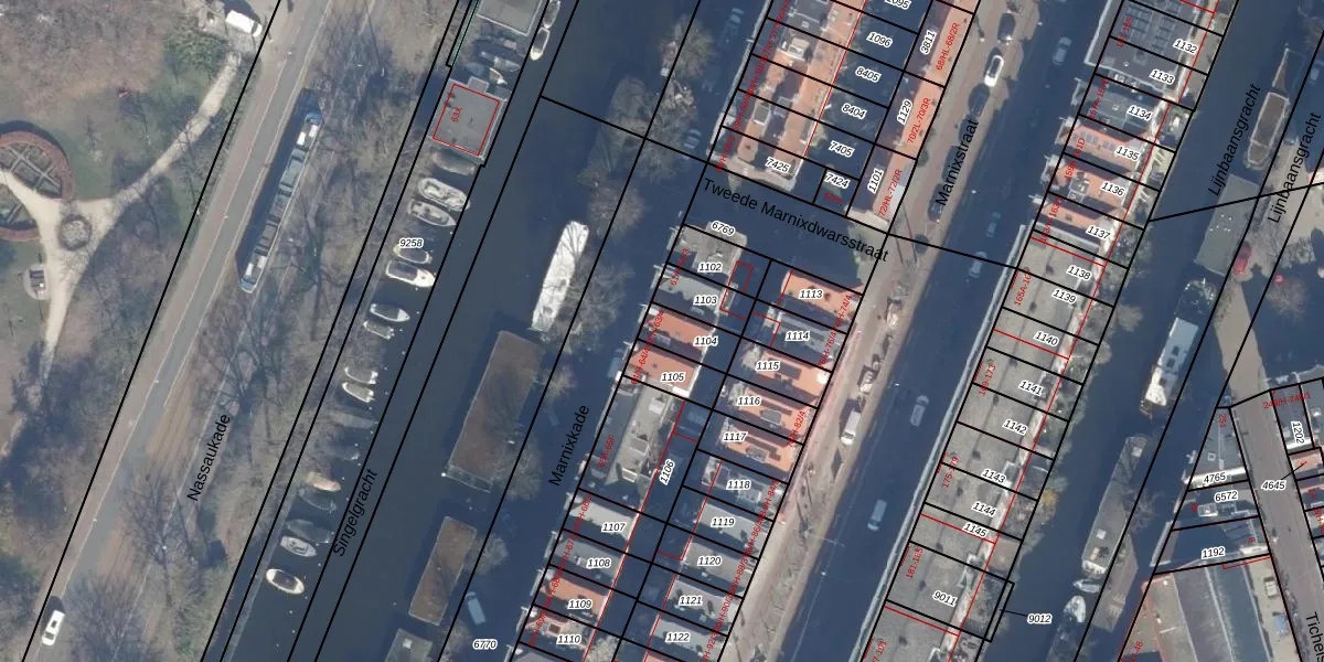 Het perceel waarop Marnixkade 63-3 staat heeft een oppervlakte van 90 m². Dit is een klein perceel. De perceeloppervlakte wordt geregistreerd door het Kadaster. Gedetailleerde informatie over de maten van dit perceel kunt u vinden in het rapport Kadastrale kaart met maatvoering van Marnixkade 63-3.