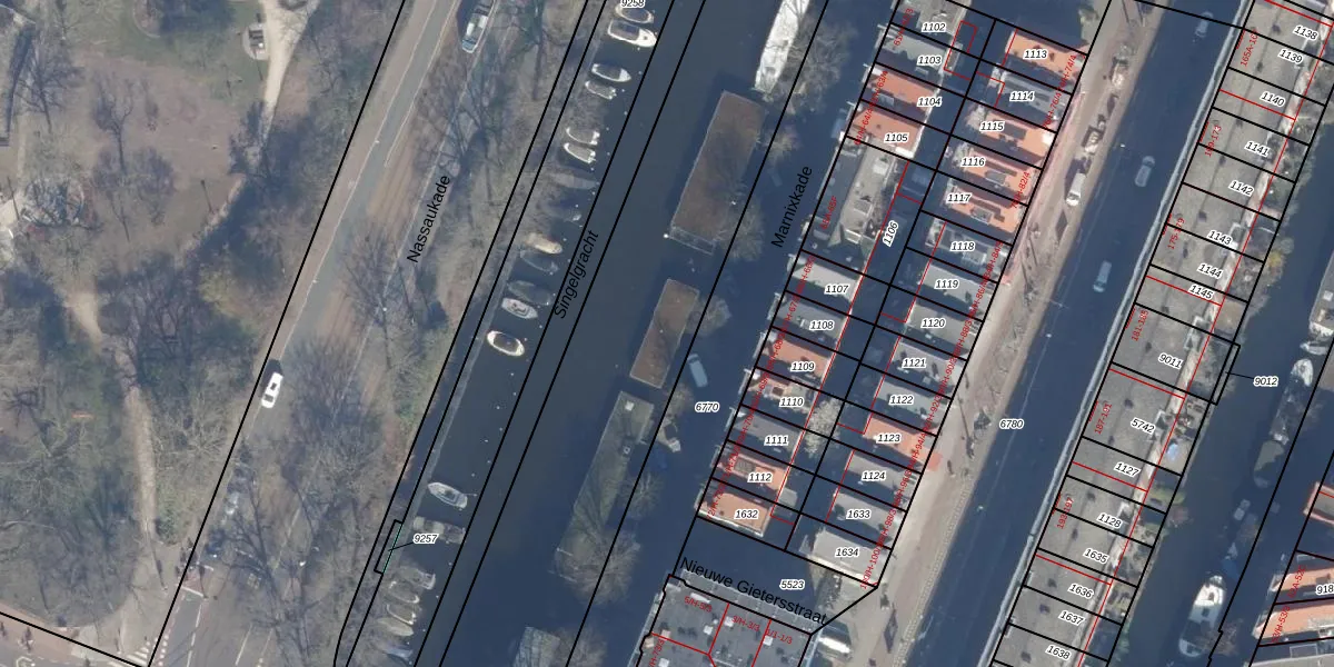 Het perceel waarop Marnixkade 69-F staat heeft een oppervlakte van 6436 m². Dit is een zeer groot perceel. De perceeloppervlakte wordt geregistreerd door het Kadaster. Gedetailleerde informatie over de maten van dit perceel kunt u vinden in het rapport Kadastrale kaart met maatvoering van Marnixkade 69-F.