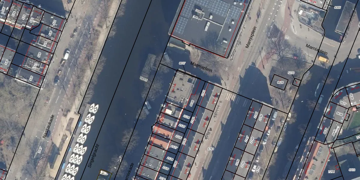 Het perceel waarop Marnixkade 75-F staat heeft een oppervlakte van 323 m². Dit is een groot perceel. De perceeloppervlakte wordt geregistreerd door het Kadaster. Gedetailleerde informatie over de maten van dit perceel kunt u vinden in het rapport Kadastrale kaart met maatvoering van Marnixkade 75-F.