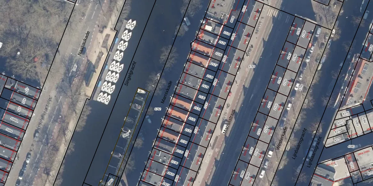 Marnixkade 82-A is gelegen op kadastraal perceel ASD08L2130. Deze kadastrale aanduiding is uniek en wordt gebruikt door het Kadaster om eigendomsrechten en andere zakelijke rechten vast te leggen. Het perceel maakt onderdeel uit van de kadastrale gemeente Amsterdam.