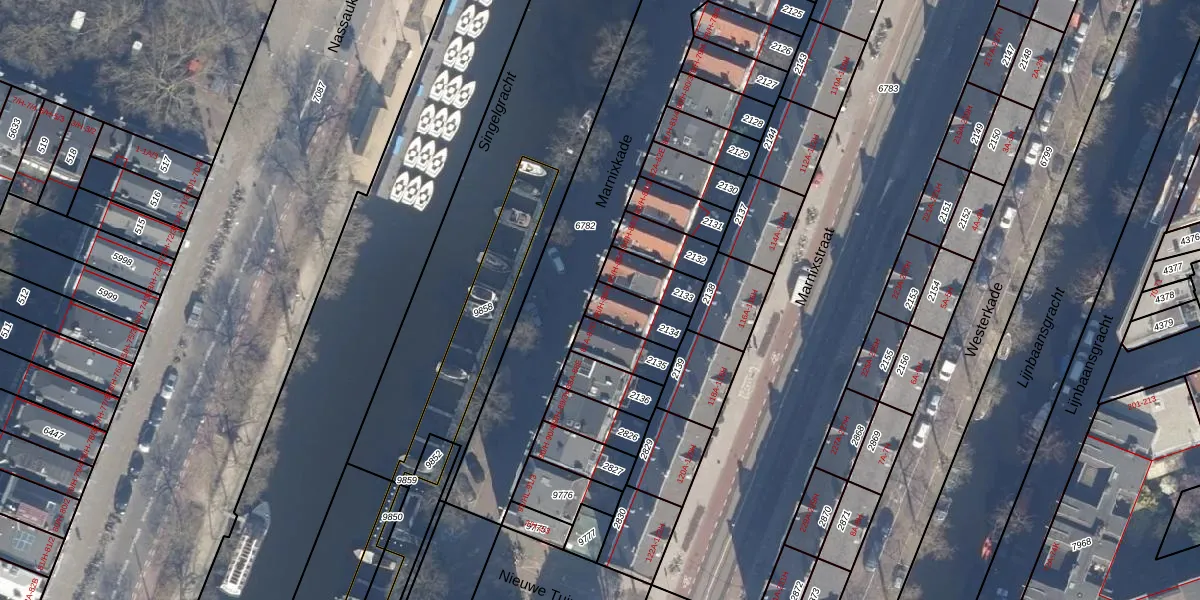 Het perceel waarop het adres ligt is ASD08-L-2134. De afkorting 'ASD08' staat voor kadastrale gemeente Amsterdam. Het perceel is kleiner dan gemiddeld in Amsterdam. Het perceel is 106 m² groot, terwijl het gemiddelde ligt op 202,23 m². Het kleinste perceel in de kadastrale gemeente is 0 m² groot. De grootste perceeloppervlakte is 3,3 ha. Op het perceel liggen in totaal 4 adressen. De huidige grenzen van het perceel zijn digitaal in de Basisregistratie Kadaster (BRK) geregistreerd op 26-01-2007.