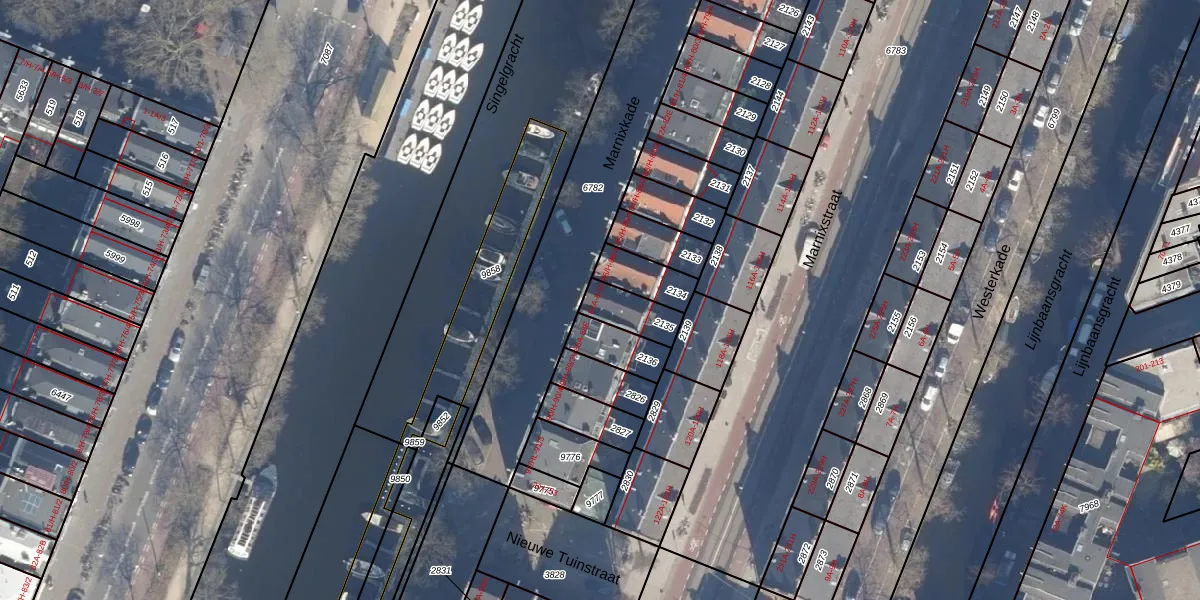 Marnixkade 87-A is gelegen op kadastraal perceel ASD08L2135. Deze kadastrale aanduiding is uniek en wordt gebruikt door het Kadaster om eigendomsrechten en andere zakelijke rechten vast te leggen. Het perceel maakt onderdeel uit van de kadastrale gemeente Amsterdam.