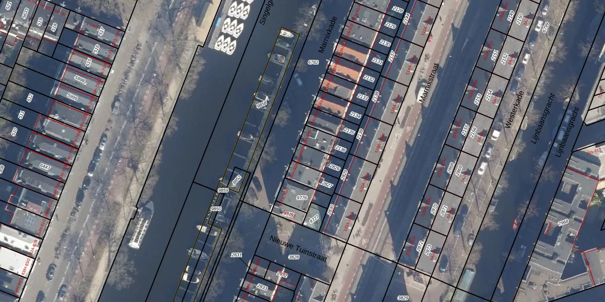 Het perceel waarop Marnixkade 89-H staat heeft een oppervlakte van 106 m². Dit is een middelgroot perceel. De perceeloppervlakte wordt geregistreerd door het Kadaster. Gedetailleerde informatie over de maten van dit perceel kunt u vinden in het rapport Kadastrale kaart met maatvoering van Marnixkade 89-H.