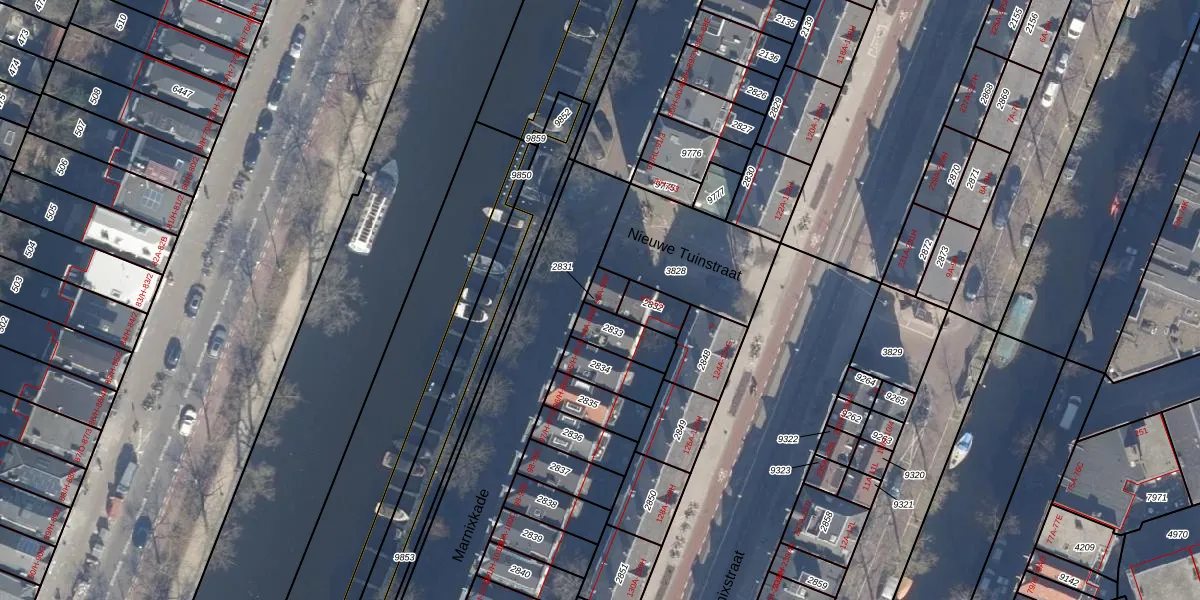 Marnixkade 93-D is gelegen op kadastraal perceel ASD08L2831. Deze kadastrale aanduiding is uniek en wordt gebruikt door het Kadaster om eigendomsrechten en andere zakelijke rechten vast te leggen. Het perceel maakt onderdeel uit van de kadastrale gemeente Amsterdam.