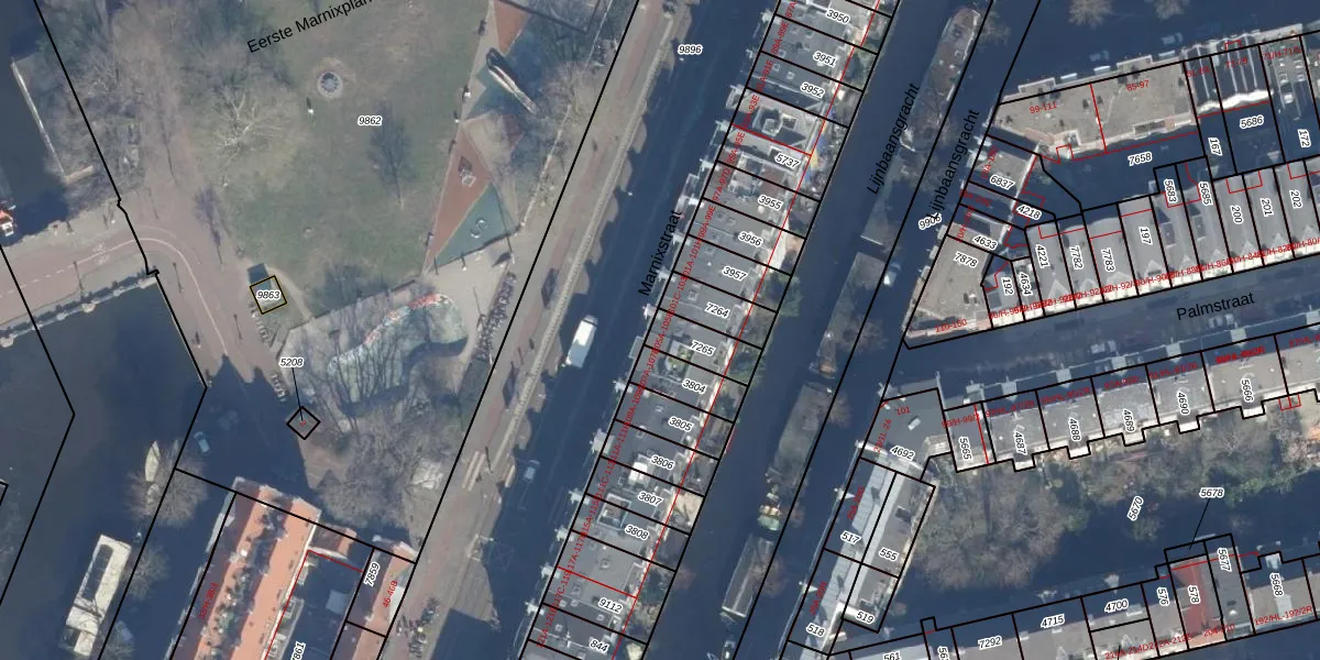 Marnixstraat 105-A is gelegen op kadastraal perceel ASD08L7265. Deze kadastrale aanduiding is uniek en wordt gebruikt door het Kadaster om eigendomsrechten en andere zakelijke rechten vast te leggen. Het perceel maakt onderdeel uit van de kadastrale gemeente Amsterdam.