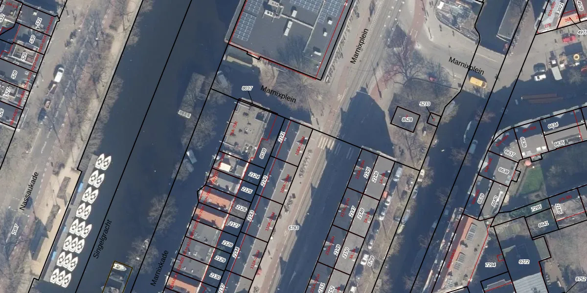 Marnixstraat 106-E is gelegen op kadastraal perceel ASD08L2141. Deze kadastrale aanduiding is uniek en wordt gebruikt door het Kadaster om eigendomsrechten en andere zakelijke rechten vast te leggen. Het perceel maakt onderdeel uit van de kadastrale gemeente Amsterdam.