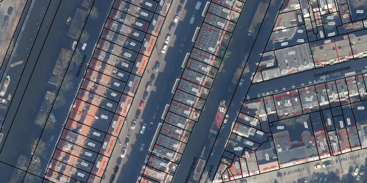 Het adres ligt op het perceel ASD08-L-5057, dat zich in de kadastrale gemeente Amsterdam bevindt. De gemiddelde perceelgrootte in Amsterdam is 202,23 m². Dit perceel is kleiner: de perceeloppervlakte bedraagt 108 m². Het grootste perceel in de kadastrale gemeente is 3,3 ha. Het kleinste perceel heeft een oppervlakte van 0 m². Op het perceel liggen in totaal 9 adressen. De huidige grenzen van het perceel zijn digitaal in de Basisregistratie Kadaster (BRK) geregistreerd op 10-01-2007.