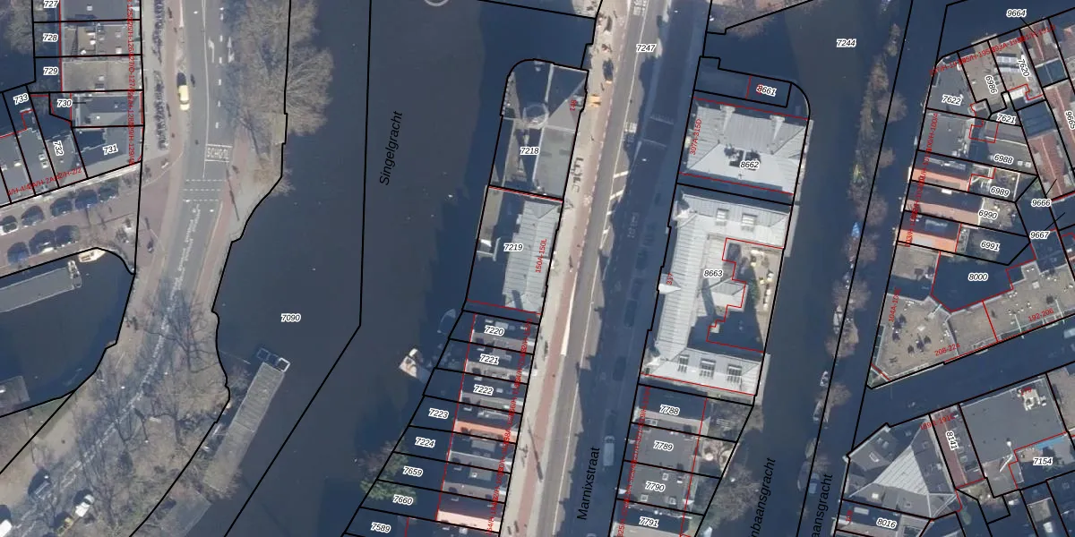 Marnixstraat 150-A is gelegen op kadastraal perceel ASD08L7219. Deze kadastrale aanduiding is uniek en wordt gebruikt door het Kadaster om eigendomsrechten en andere zakelijke rechten vast te leggen. Het perceel maakt onderdeel uit van de kadastrale gemeente Amsterdam.