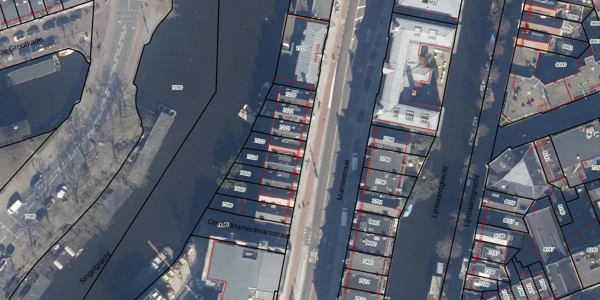 Marnixstraat 158-B is gelegen op kadastraal perceel ASD08L7223. Deze kadastrale aanduiding is uniek en wordt gebruikt door het Kadaster om eigendomsrechten en andere zakelijke rechten vast te leggen. Het perceel maakt onderdeel uit van de kadastrale gemeente Amsterdam.
