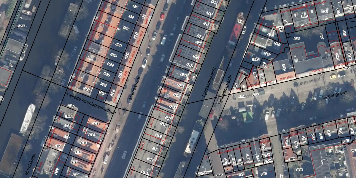 Het perceel waarop Marnixstraat 159-C staat heeft een oppervlakte van 103 m². Dit is een middelgroot perceel. De perceeloppervlakte wordt geregistreerd door het Kadaster. Gedetailleerde informatie over de maten van dit perceel kunt u vinden in het rapport Kadastrale kaart met maatvoering van Marnixstraat 159-C.