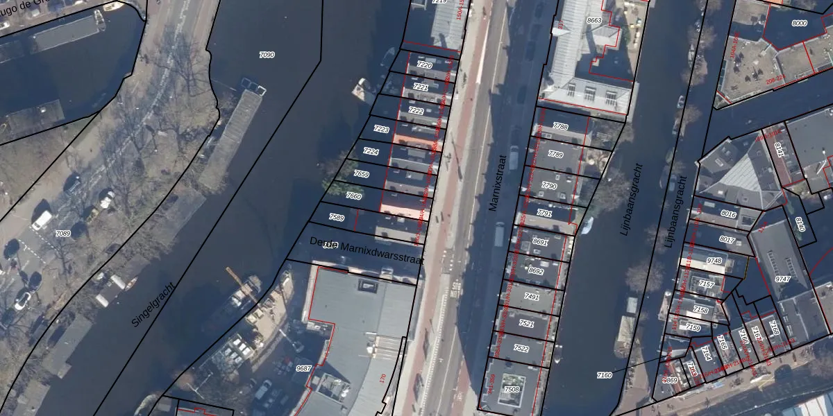 Marnixstraat 164-3 is gelegen op kadastraal perceel ASD08L7660. Deze kadastrale aanduiding is uniek en wordt gebruikt door het Kadaster om eigendomsrechten en andere zakelijke rechten vast te leggen. Het perceel maakt onderdeel uit van de kadastrale gemeente Amsterdam.