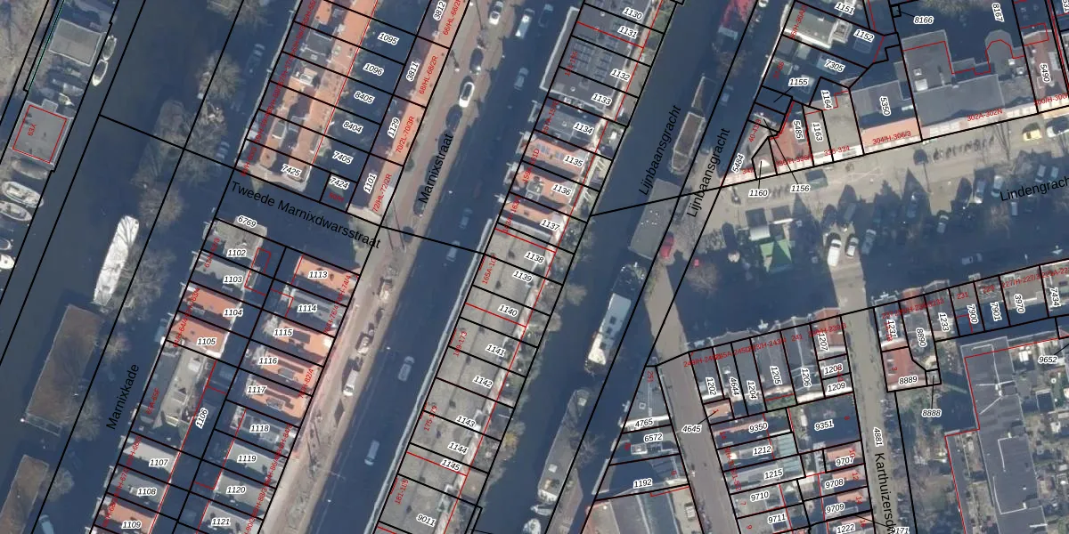 Het perceel waarop Marnixstraat 165-D staat heeft een oppervlakte van 101 m². Dit is een middelgroot perceel. De perceeloppervlakte wordt geregistreerd door het Kadaster. Gedetailleerde informatie over de maten van dit perceel kunt u vinden in het rapport Kadastrale kaart met maatvoering van Marnixstraat 165-D.