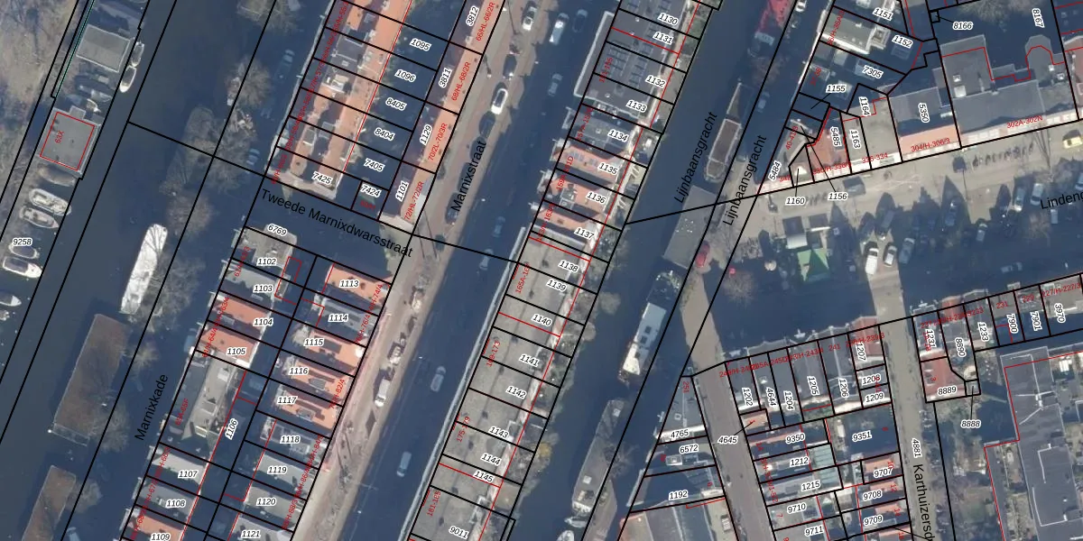 Het perceel waarop Marnixstraat 165-H staat heeft een oppervlakte van 101 m². Dit is een middelgroot perceel. De perceeloppervlakte wordt geregistreerd door het Kadaster. Gedetailleerde informatie over de maten van dit perceel kunt u vinden in het rapport Kadastrale kaart met maatvoering van Marnixstraat 165-H.