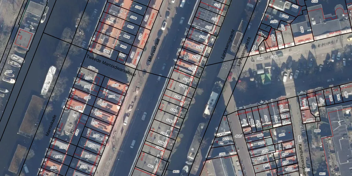 Het perceel waarop Marnixstraat 167 staat heeft een oppervlakte van 102 m². Dit is een middelgroot perceel. De perceeloppervlakte wordt geregistreerd door het Kadaster. Gedetailleerde informatie over de maten van dit perceel kunt u vinden in het rapport Kadastrale kaart met maatvoering van Marnixstraat 167.