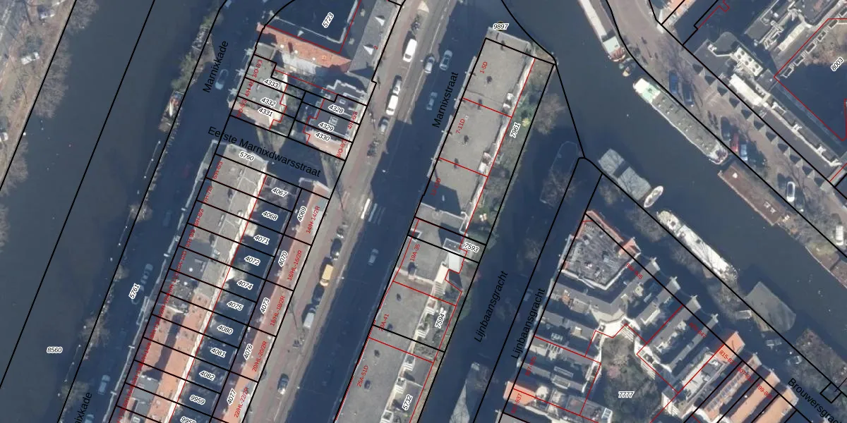 Het perceel waarop Marnixstraat 17-C staat heeft een oppervlakte van 816 m². Dit is een groot perceel. De perceeloppervlakte wordt geregistreerd door het Kadaster. Gedetailleerde informatie over de maten van dit perceel kunt u vinden in het rapport Kadastrale kaart met maatvoering van Marnixstraat 17-C.