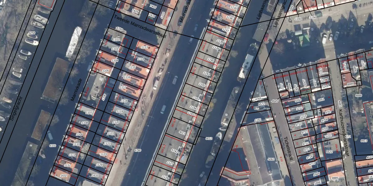 Het perceel waarop Marnixstraat 175 staat heeft een oppervlakte van 103 m². Dit is een middelgroot perceel. De perceeloppervlakte wordt geregistreerd door het Kadaster. Gedetailleerde informatie over de maten van dit perceel kunt u vinden in het rapport Kadastrale kaart met maatvoering van Marnixstraat 175.