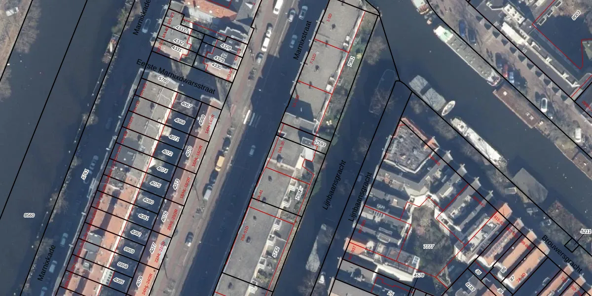 Het perceel waarop Marnixstraat 19-D staat heeft een oppervlakte van 411 m². Dit is een groot perceel. De perceeloppervlakte wordt geregistreerd door het Kadaster. Gedetailleerde informatie over de maten van dit perceel kunt u vinden in het rapport Kadastrale kaart met maatvoering van Marnixstraat 19-D.