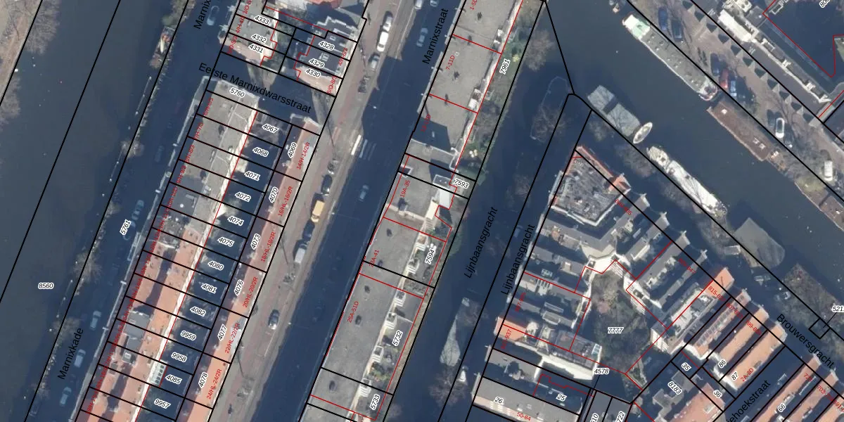 Het perceel waarop Marnixstraat 21-C staat heeft een oppervlakte van 411 m². Dit is een groot perceel. De perceeloppervlakte wordt geregistreerd door het Kadaster. Gedetailleerde informatie over de maten van dit perceel kunt u vinden in het rapport Kadastrale kaart met maatvoering van Marnixstraat 21-C.
