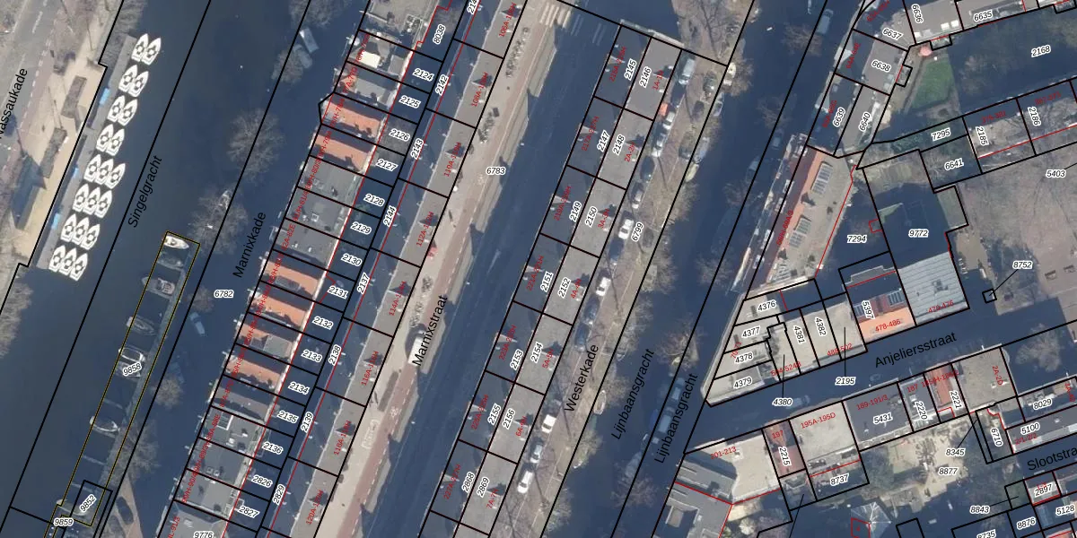 Het perceel waarop Marnixstraat 221-C staat heeft een oppervlakte van 83 m². Dit is een klein perceel. De perceeloppervlakte wordt geregistreerd door het Kadaster. Gedetailleerde informatie over de maten van dit perceel kunt u vinden in het rapport Kadastrale kaart met maatvoering van Marnixstraat 221-C.