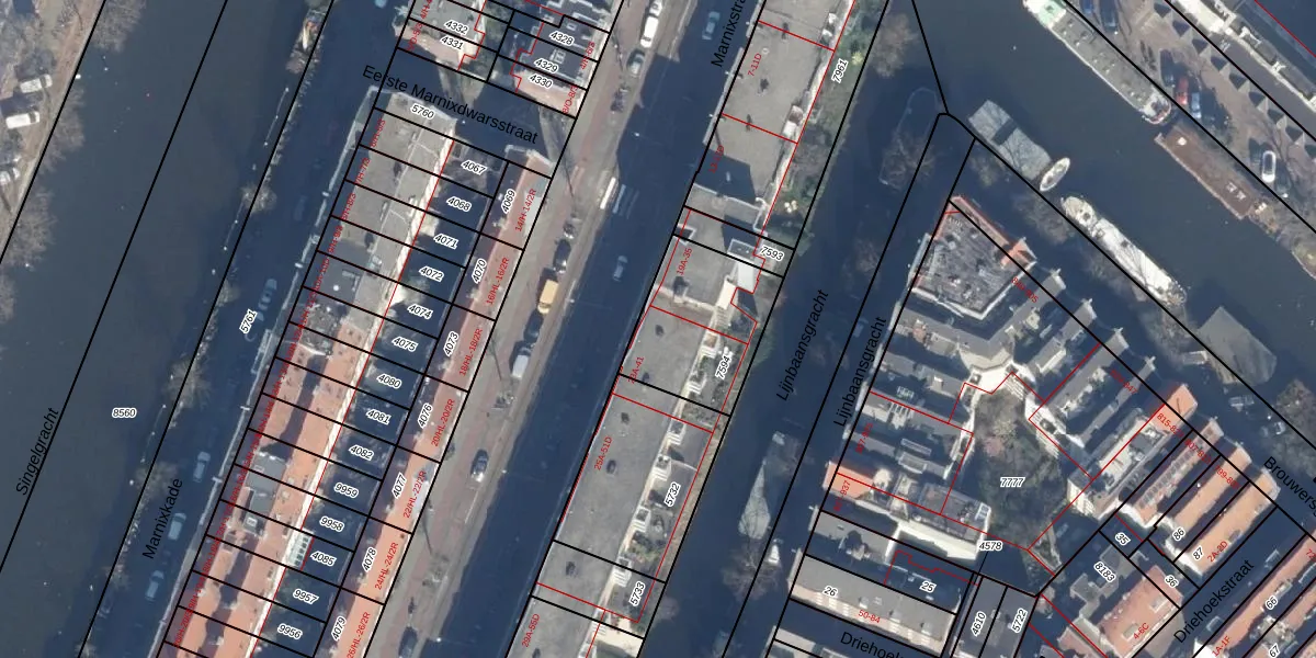 Het perceel waarop Marnixstraat 37-A staat heeft een oppervlakte van 411 m². Dit is een groot perceel. De perceeloppervlakte wordt geregistreerd door het Kadaster. Gedetailleerde informatie over de maten van dit perceel kunt u vinden in het rapport Kadastrale kaart met maatvoering van Marnixstraat 37-A.