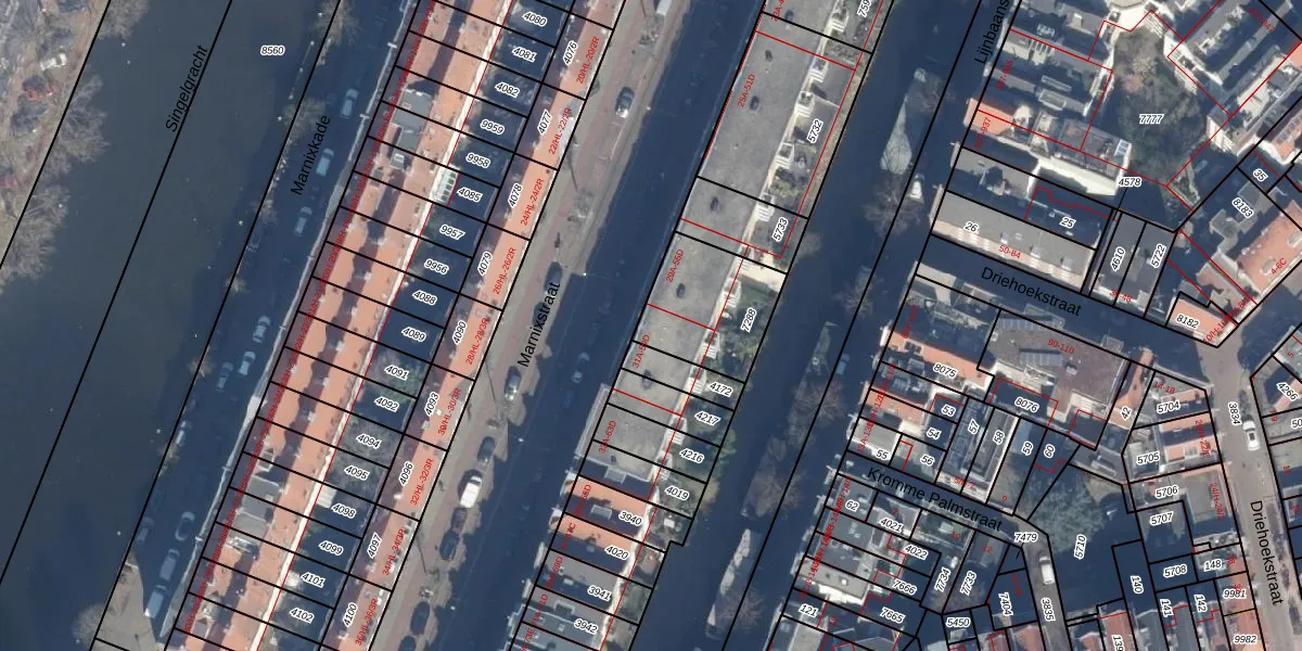 Marnixstraat 57-A is gelegen op kadastraal perceel ASD08L7288. Deze kadastrale aanduiding is uniek en wordt gebruikt door het Kadaster om eigendomsrechten en andere zakelijke rechten vast te leggen. Het perceel maakt onderdeel uit van de kadastrale gemeente Amsterdam.