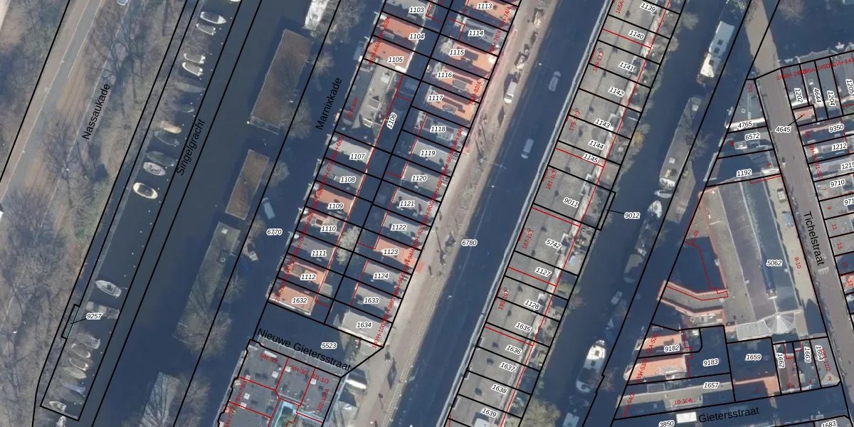 Het perceel waarop Marnixstraat 90-2 staat heeft een oppervlakte van 89 m². Dit is een klein perceel. De perceeloppervlakte wordt geregistreerd door het Kadaster. Gedetailleerde informatie over de maten van dit perceel kunt u vinden in het rapport Kadastrale kaart met maatvoering van Marnixstraat 90-2.