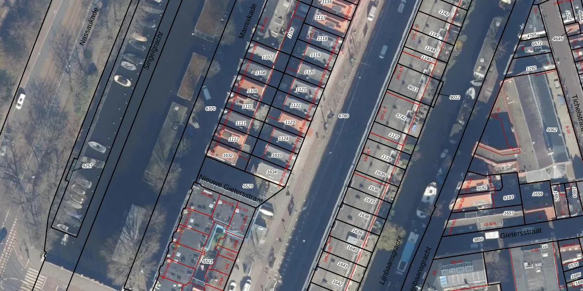 Het perceel waarop Marnixstraat 96-1 staat heeft een oppervlakte van 89 m². Dit is een klein perceel. De perceeloppervlakte wordt geregistreerd door het Kadaster. Gedetailleerde informatie over de maten van dit perceel kunt u vinden in het rapport Kadastrale kaart met maatvoering van Marnixstraat 96-1.